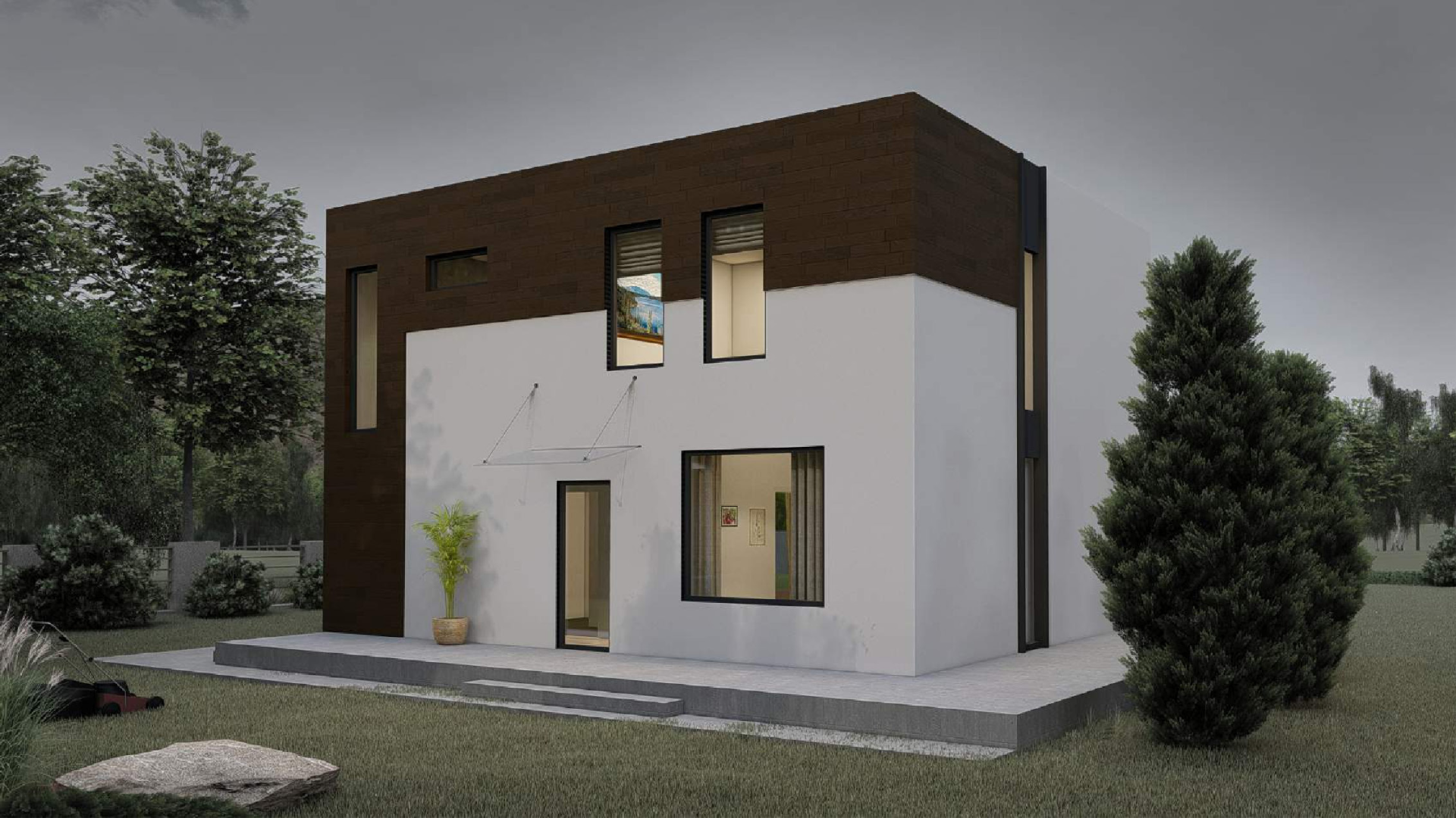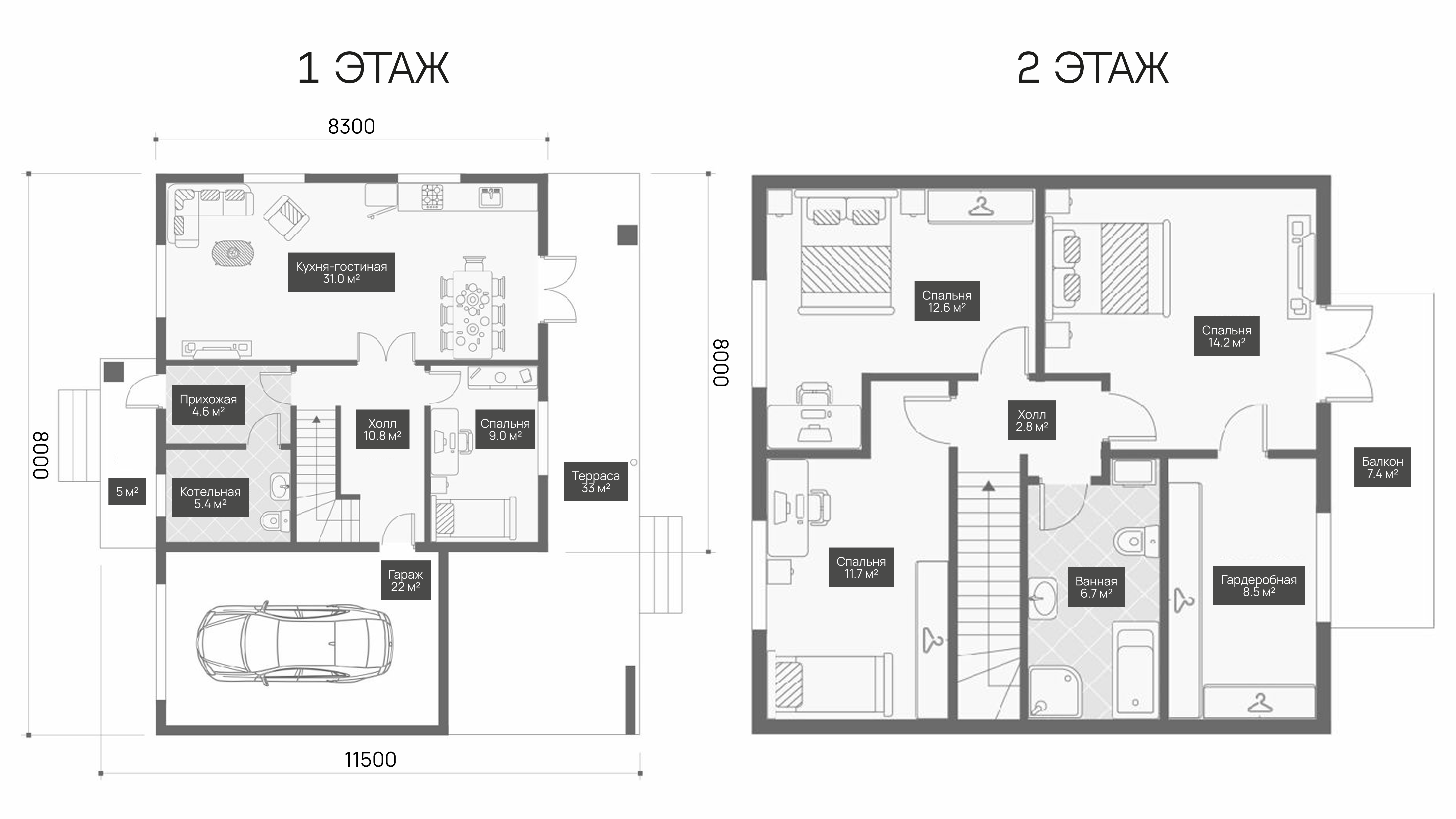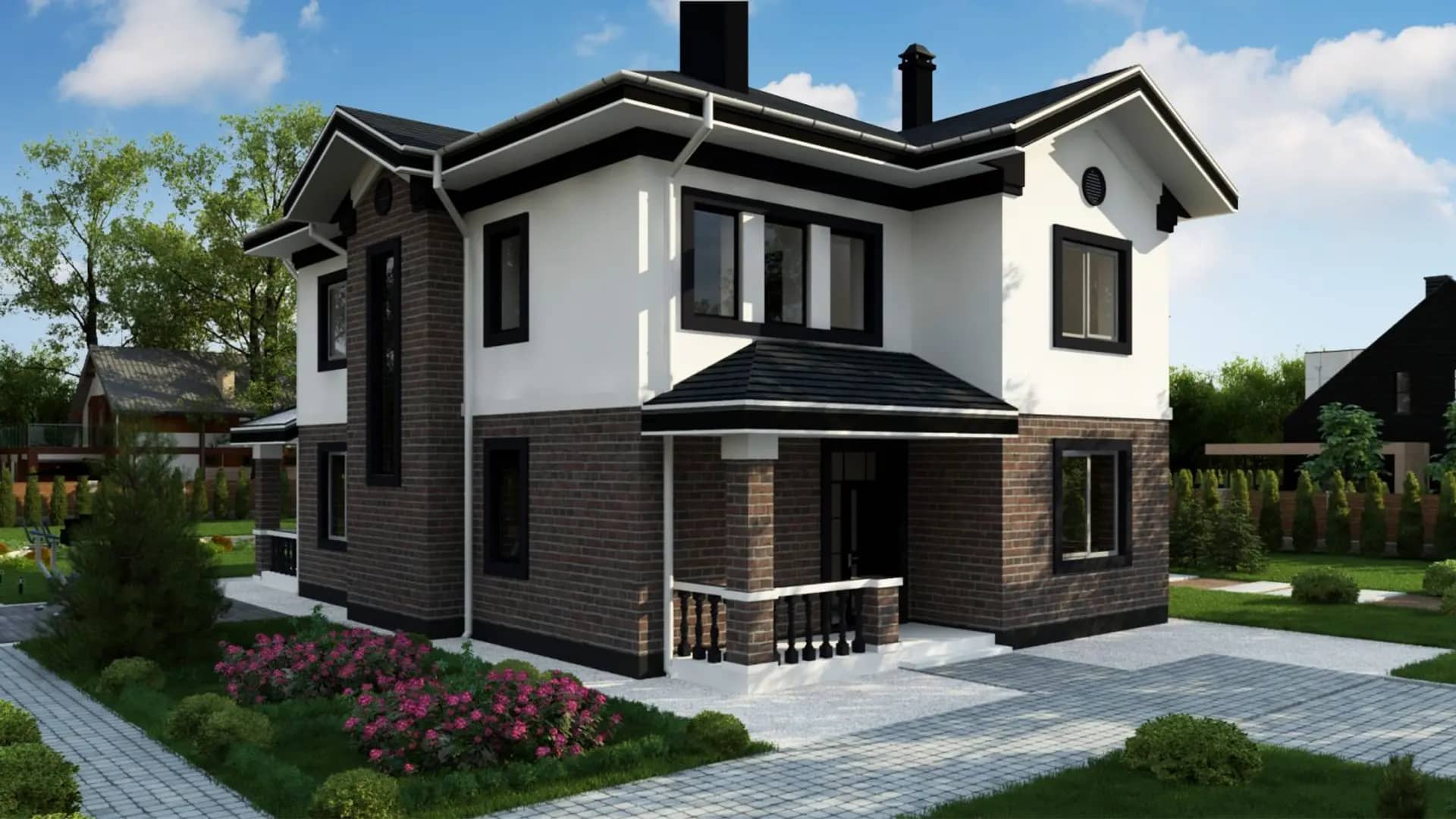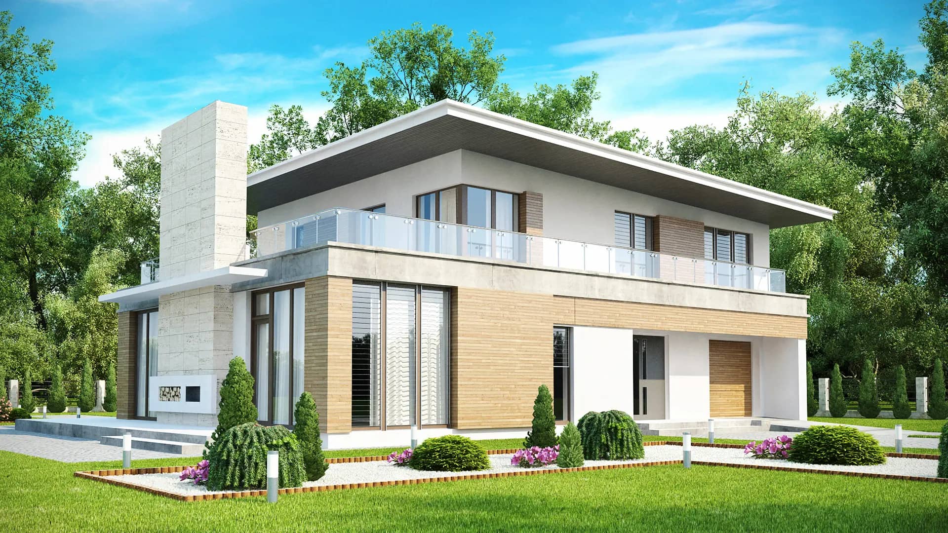 Современный двухэтажный дом с гаражом.