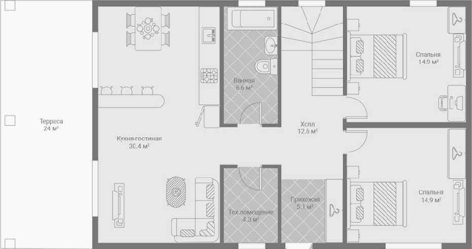 Общая площадь: 126.6 м2