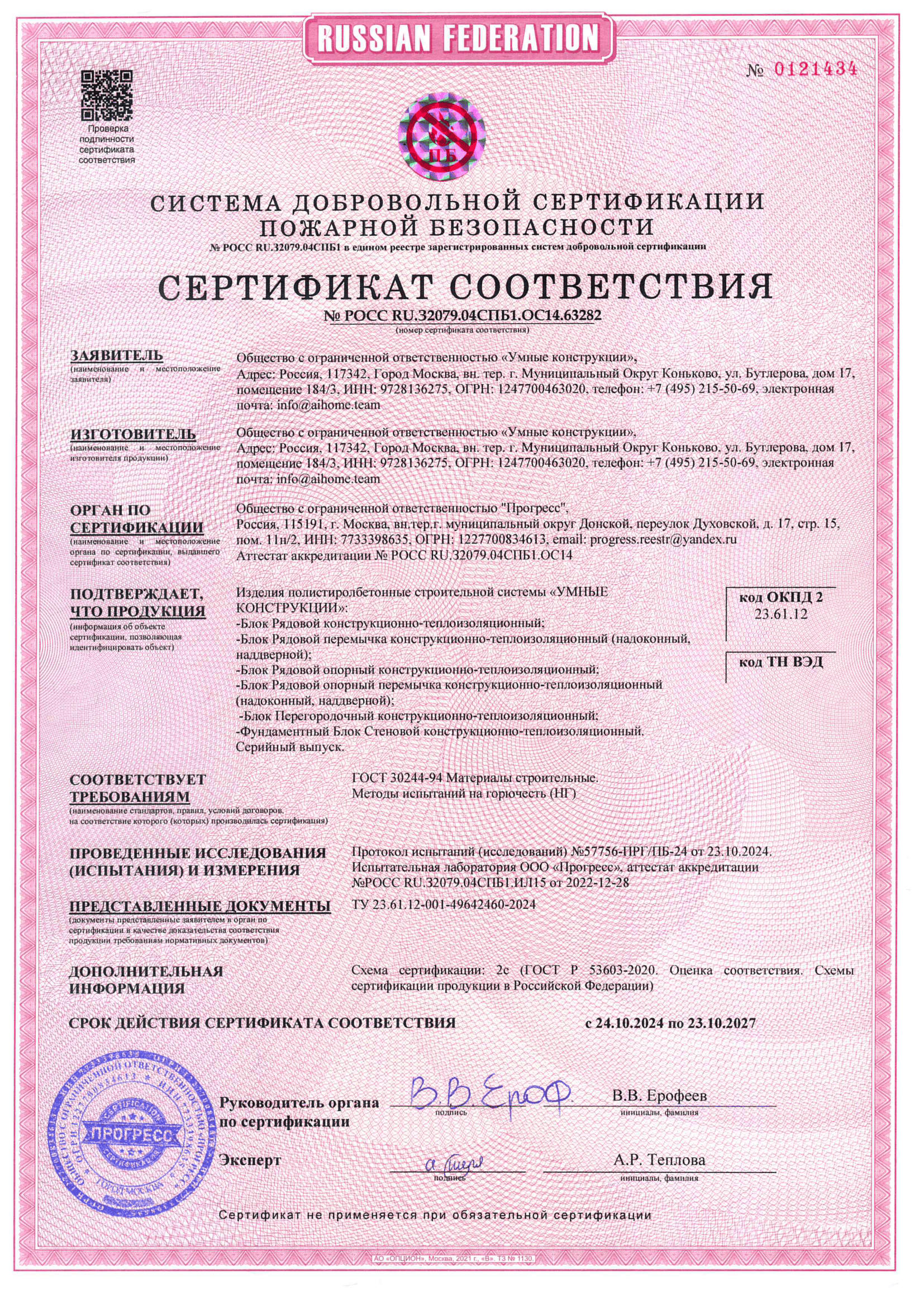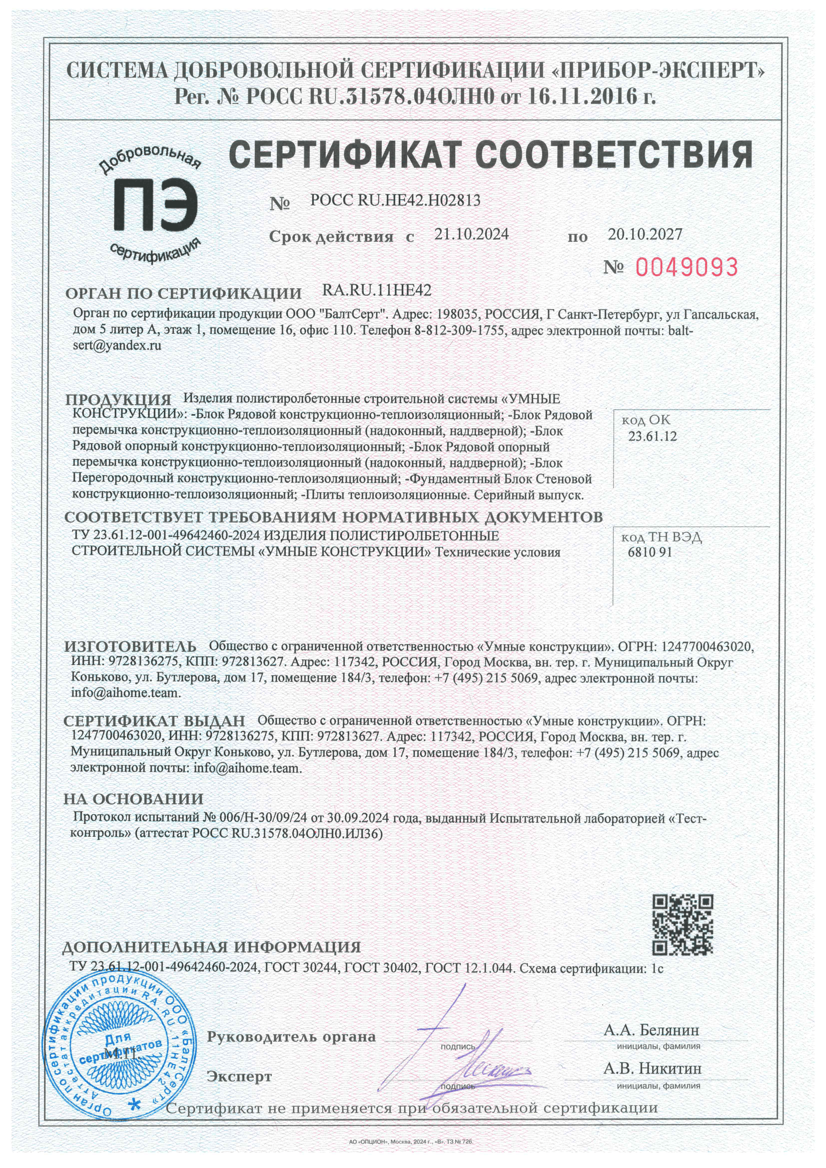 Сертификаты и документы на используемые материалы и строительные решения