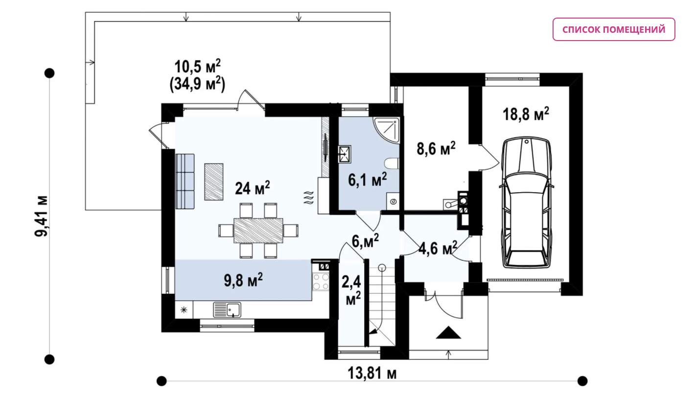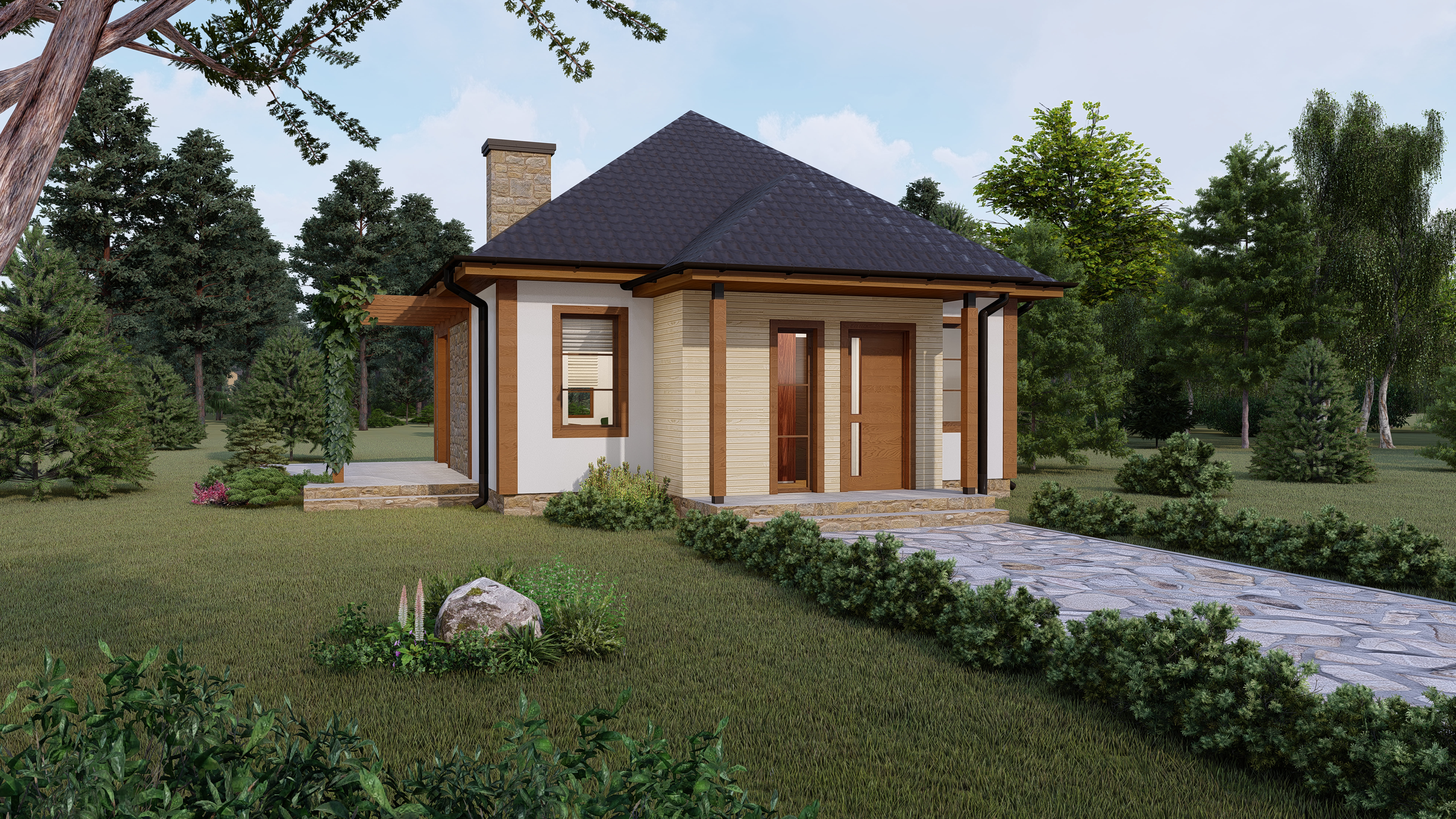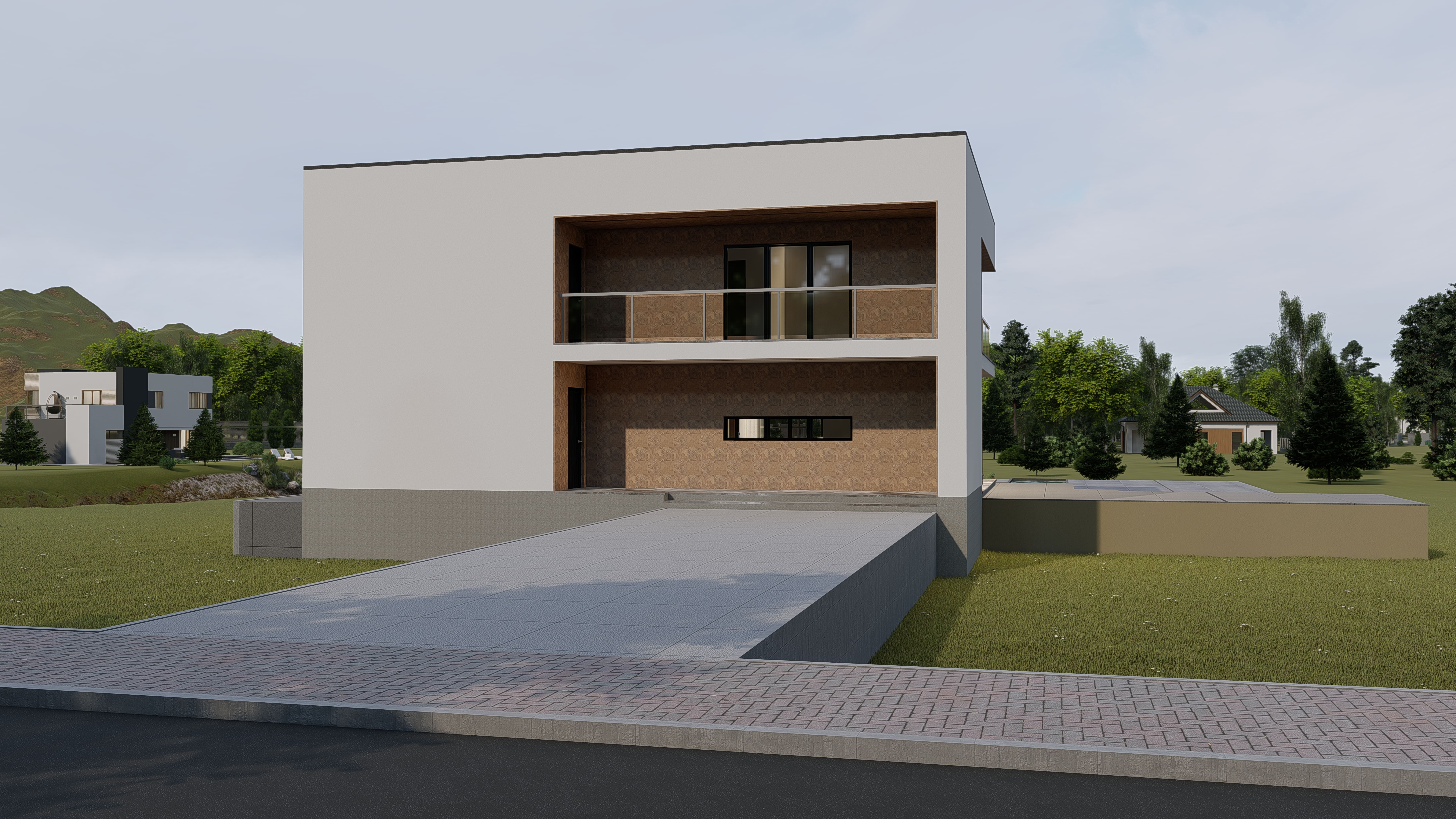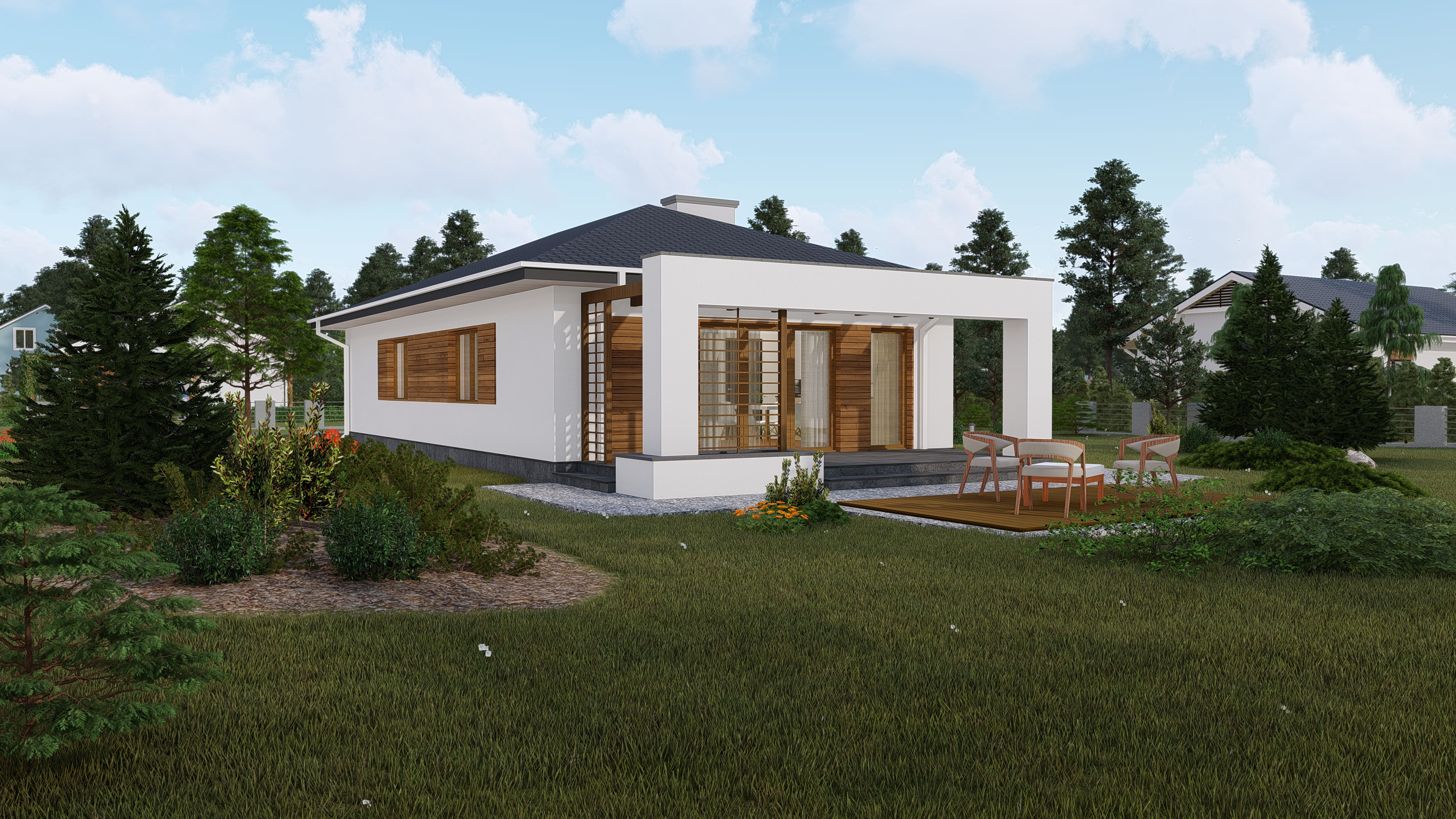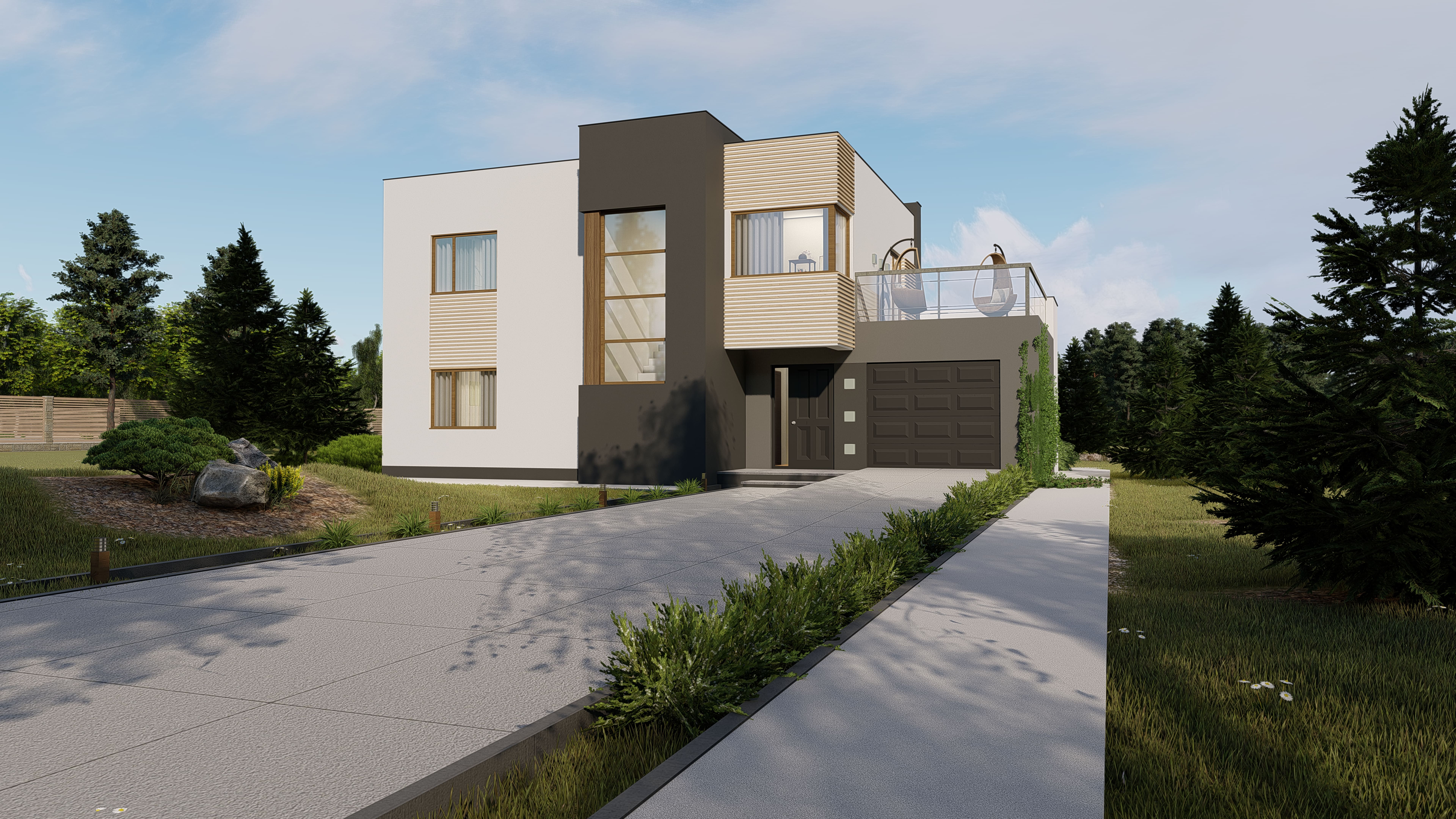 Современный дом с удобной планировкой и гаражом для комфортной семейной жизни.